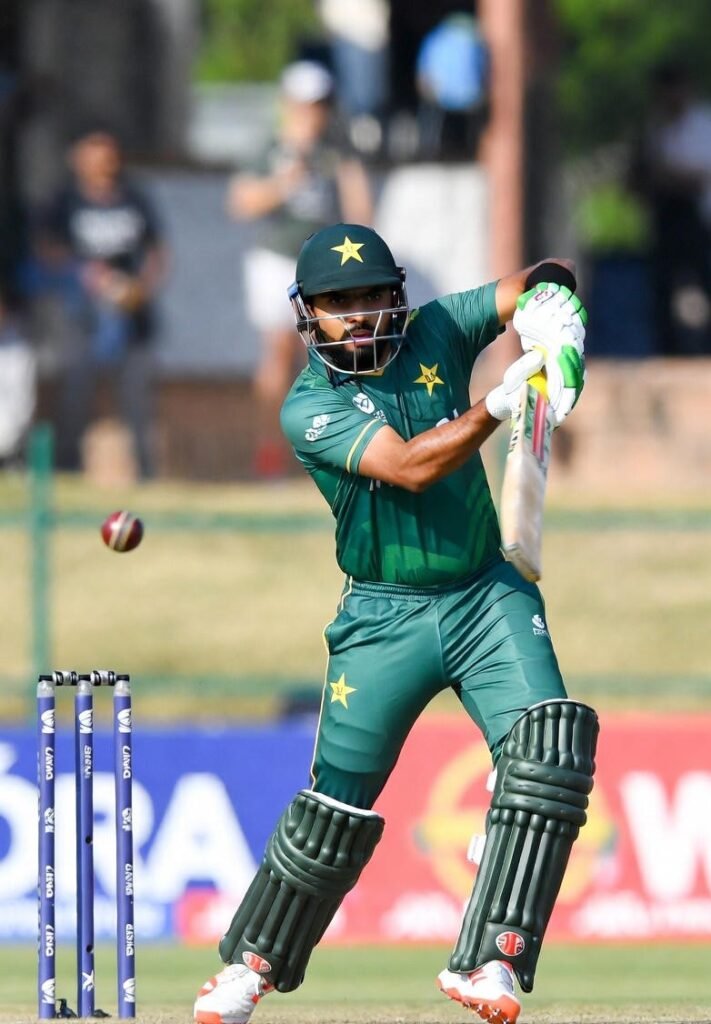 पाकिस्तान की पारी लड़खड़ाती हुई शुरू हुई। शुरुआती विकेट जल्दी गिर गए और ज़िम्बाब्वे के सटीक गेंदबाज़ों के सामने रन बनाना मुश्किल होता गया। दबाव बढ़ रहा था, लेकिन कप्तान बाबर आज़म एक मज़बूत स्तंभ बनकर डटे रहे।